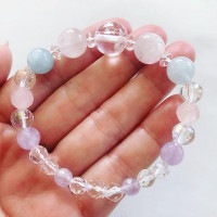 【超美石】クンツァイト(ピンク/イエロー)×水晶 ブレスレット