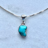 注文してから迅速に、丁寧な梱包でお届け下さりありがとうございます。ターコイズのスカイブルーの色がとても美しい、細工のしっかりとしたペンダントトップで、とても気に入って早速つけています。